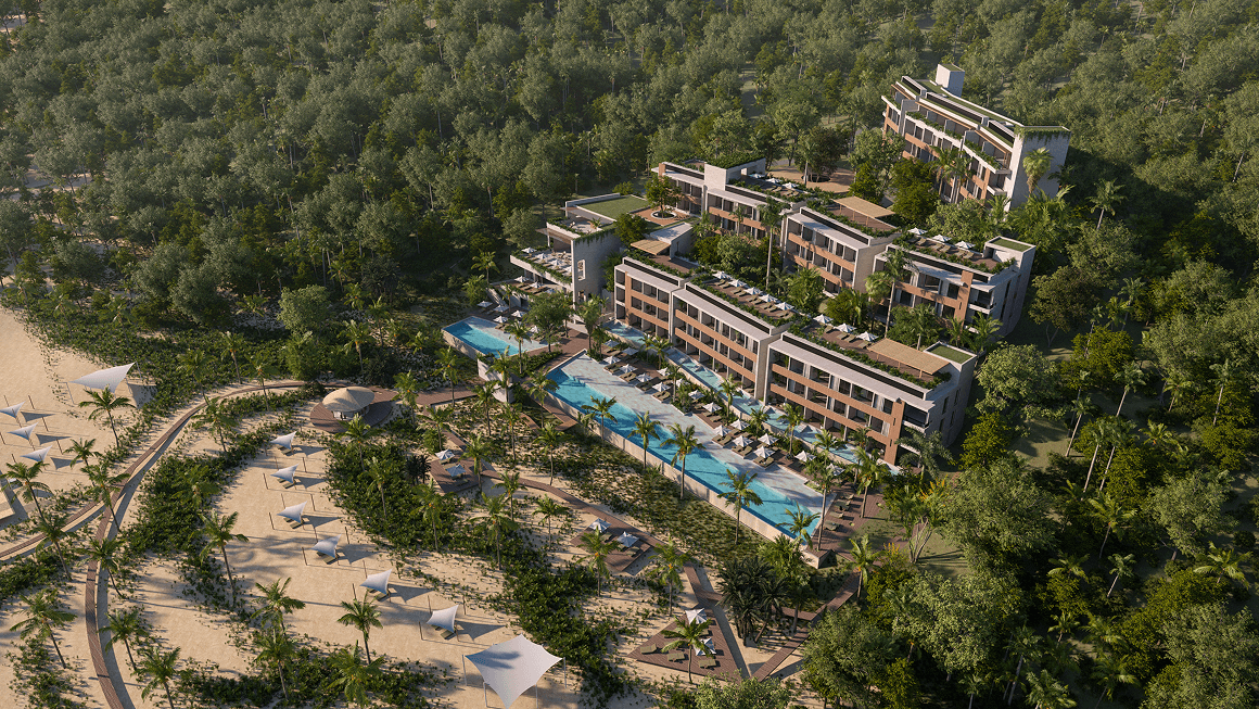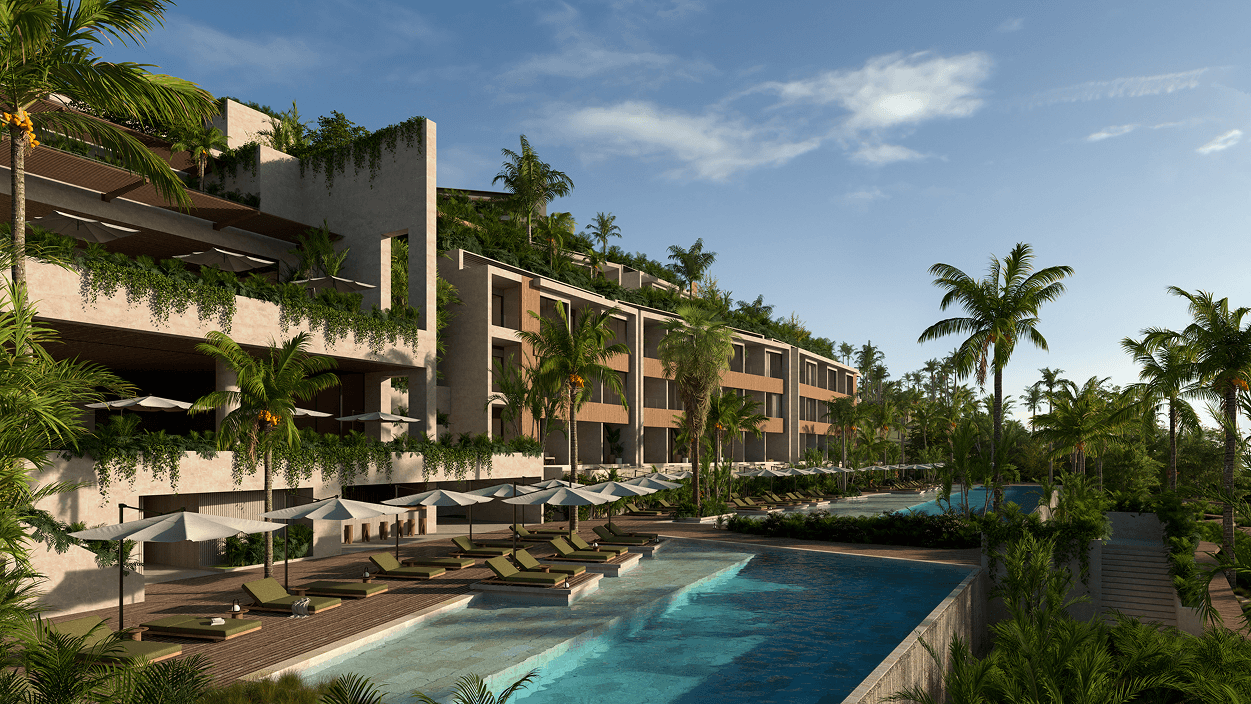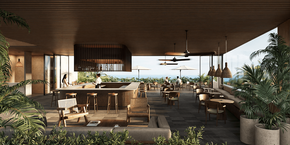 It offers 16 common areas designed for different activities, including two infinity pools with direct ocean views.