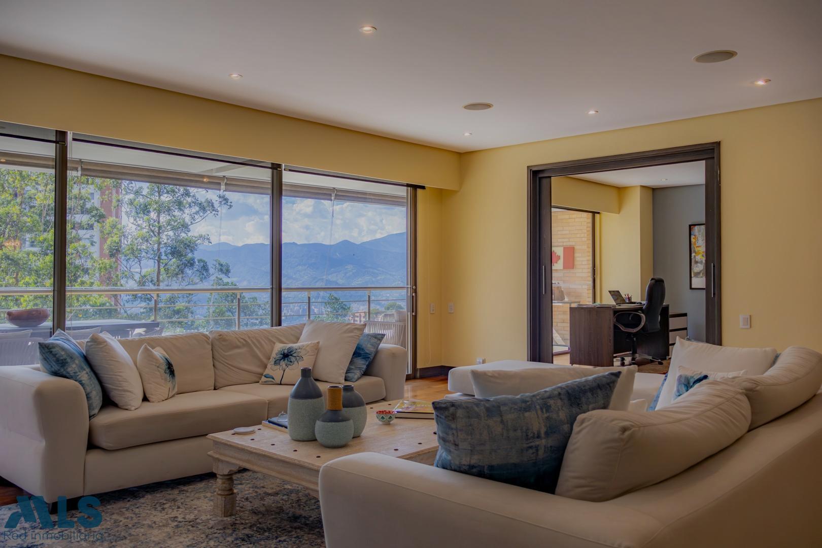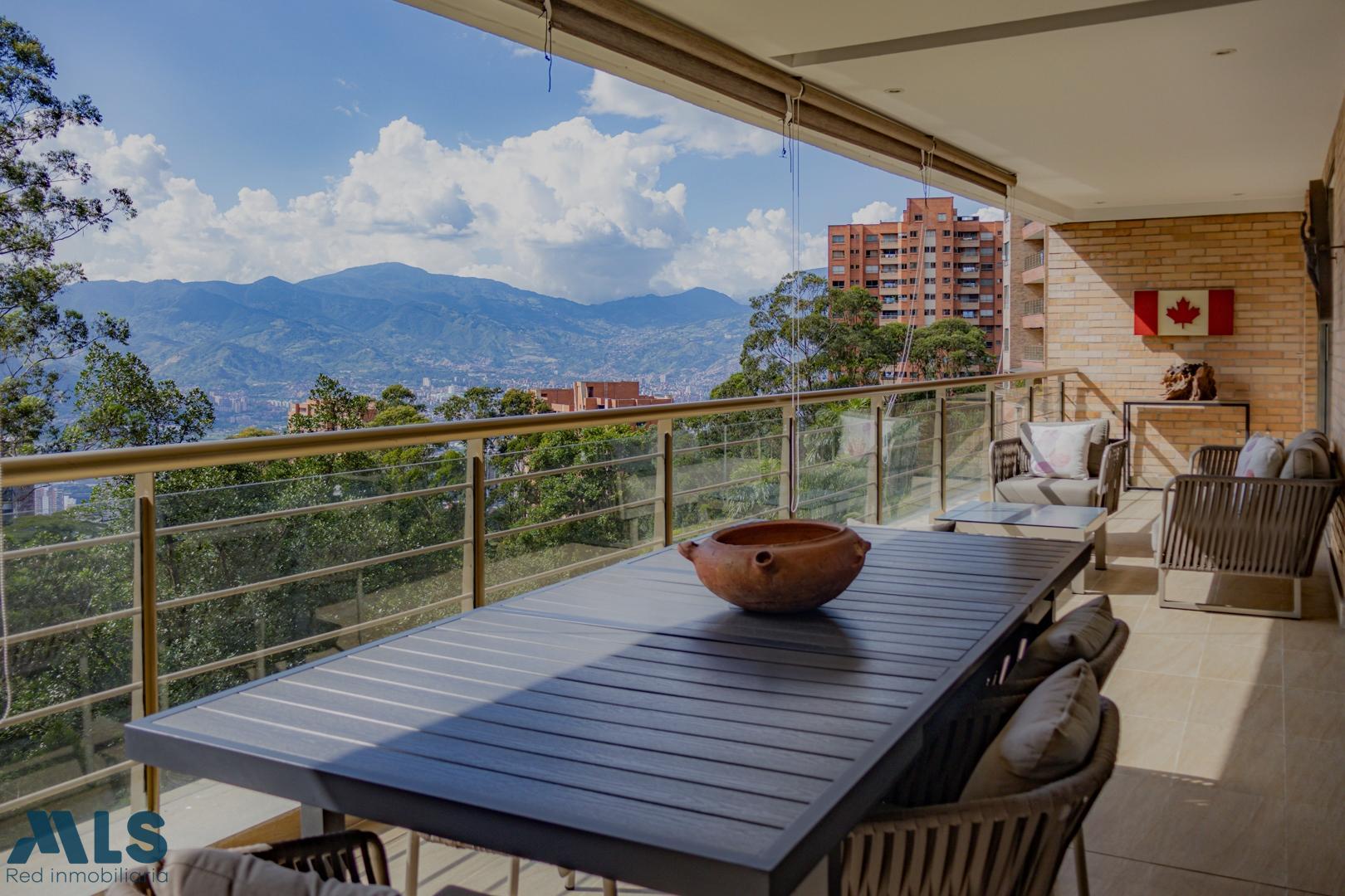 Apartamento en exclusivo sector de El Poblado, con amplios espacios, excelente iluminación natural y vista a la ciudad. Zona social con chimenea, cocina totalmente equipada y estudio con vista panorámica. Cuenta con 3 habitaciones, todas con baño privado y clóset, además de habitación del servicio con baño. Dispone de dos balcones: el principal, el más amplio, con vista abierta a Medellín, y un segundo con vista a zona verde. Incluye ascensor privado con ingreso directo al apartamento y ascensor para visitas. Unidad residencial con piscina, gimnasio, zonas verdes y salón social, ubicada cerca de colegios, centros comerciales y vías principales, con seguridad.