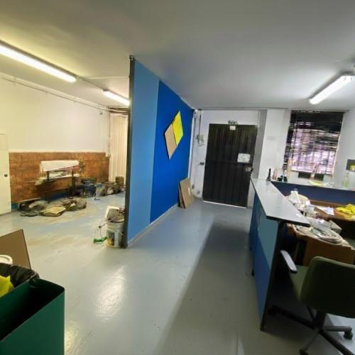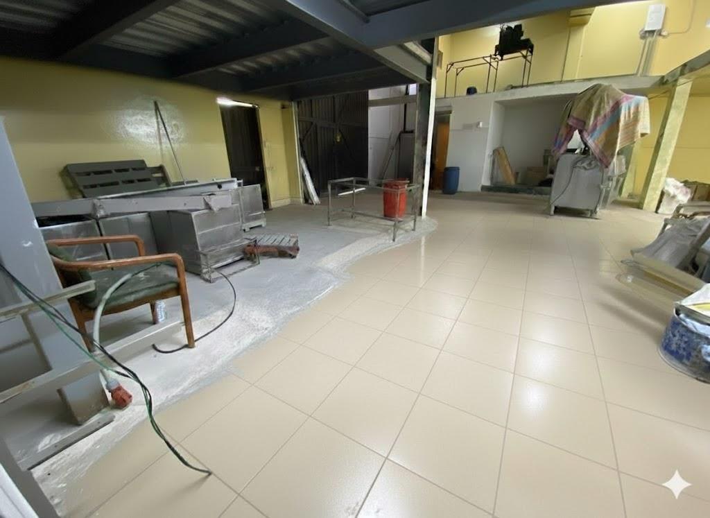 The property features a loading/unloading area, double-height warehouse space, modern offices on each level, reception area, kitchenette, and separate locker rooms. All supported by water storage tanks and active utility services.