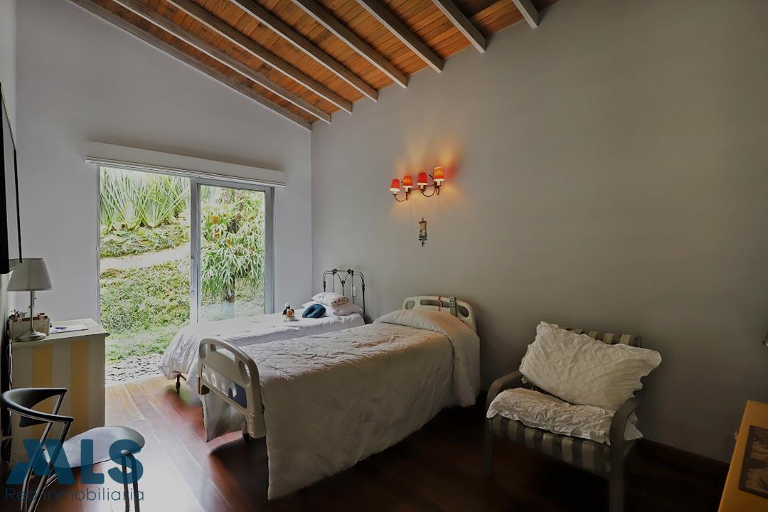 Casa de una sola planta, con 2 habitaciones, posibilidad de la tercera cerrando la biblioteca, la cual cuenta con baño y vestier . La casa se encuentra en un entorno muy campestre rodeada de bosque nativo. Cuenta con una habitación de servicio muy independiente para dos o tres personas.