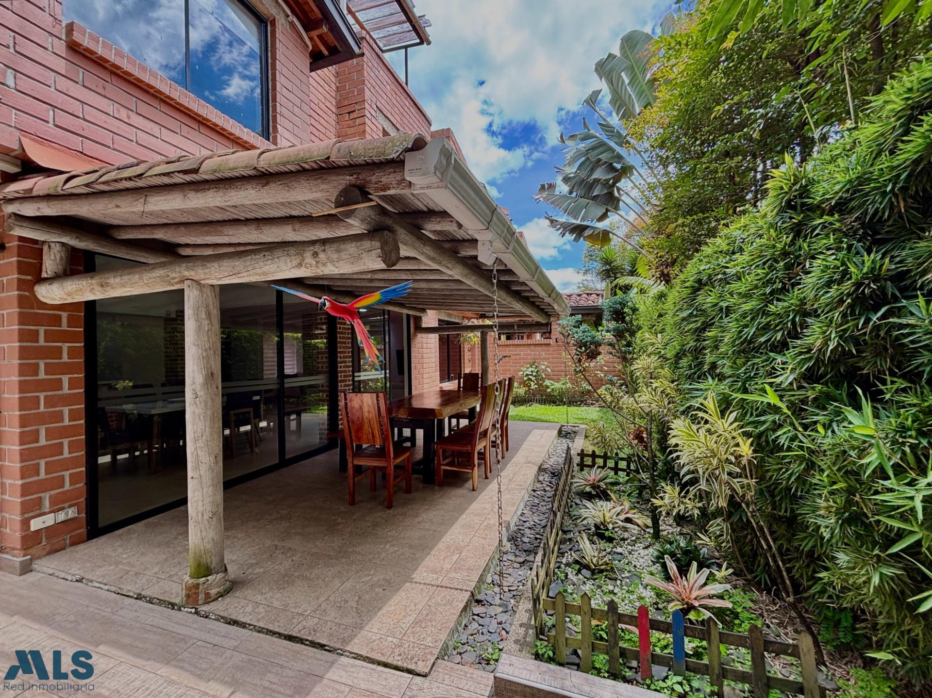 Está casa está ubicada en el sector de los parra, a solo 3 minutos del centro comercial El Tesoro. Tiene un área construida de 229.7 m2, dividido en 3 pisos, en un lote de 347 m2 de los cuales 117.35 m2 son un jardín anexo escriturado como zona común de uso exclusivo, por lo que solo lo disfruta la casa, pero no cuenta en el pago del predial o administración del conjunto. Tiene 3 habitaciones familiares, la principal con baño y vestier. Oficina en el mezanine (3er piso) con balcón. La zona social de la casa está compuesta por sala y comedor independientes, sala de estar, terraza en el jardín, parque infantil con zona verde privada y acceso directo a la piscina de la urbanización, tiene un espacio adaptado para poner un jacuzzi. La habitación de servicio y zona de lavandería, son independientes, fuera de la casa. La urbanización tiene portería 24h, kiosko social, piscina climatizada y parqueaderos de visitantes.