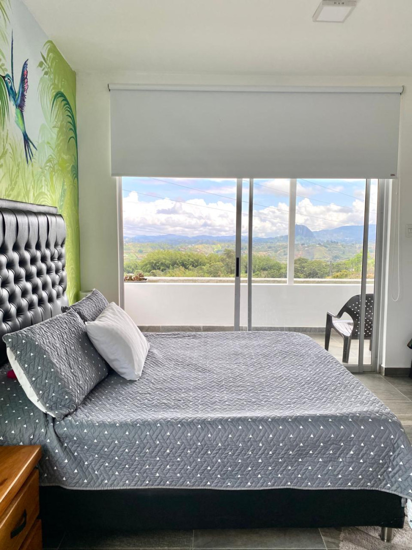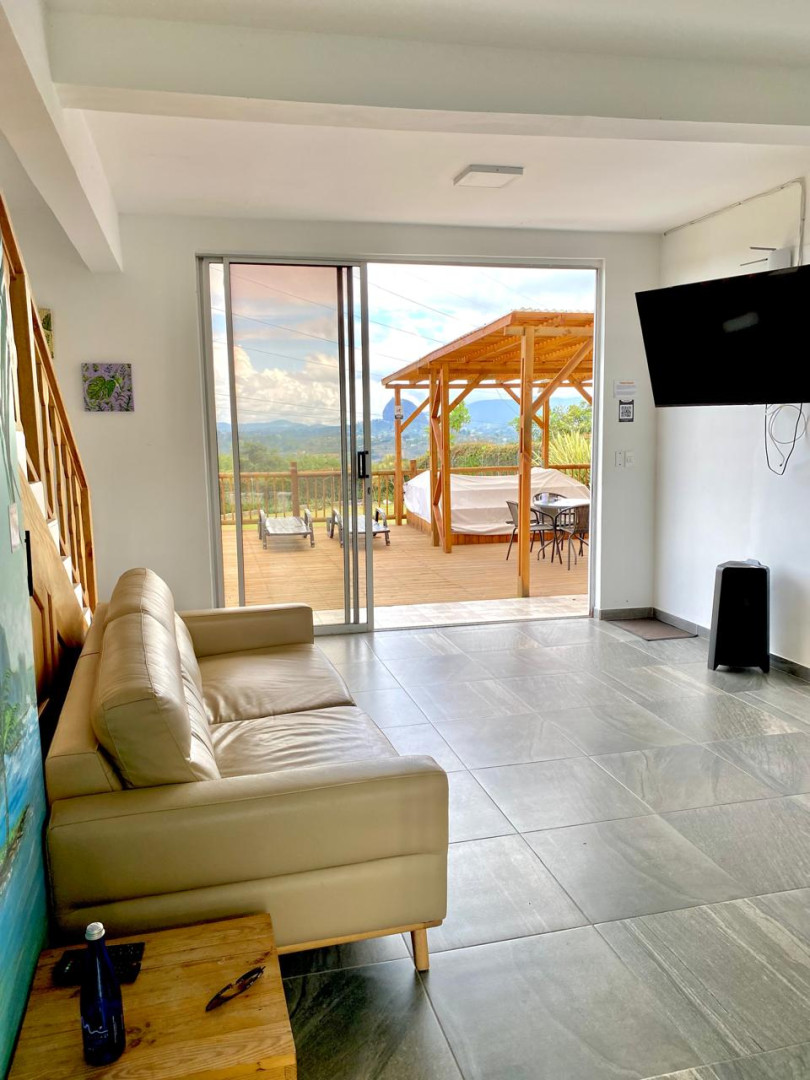 Built 7 years ago, this property offers generous indoor and outdoor spaces, surrounded by open green areas and featuring a privileged view of El Peñol Rock.
