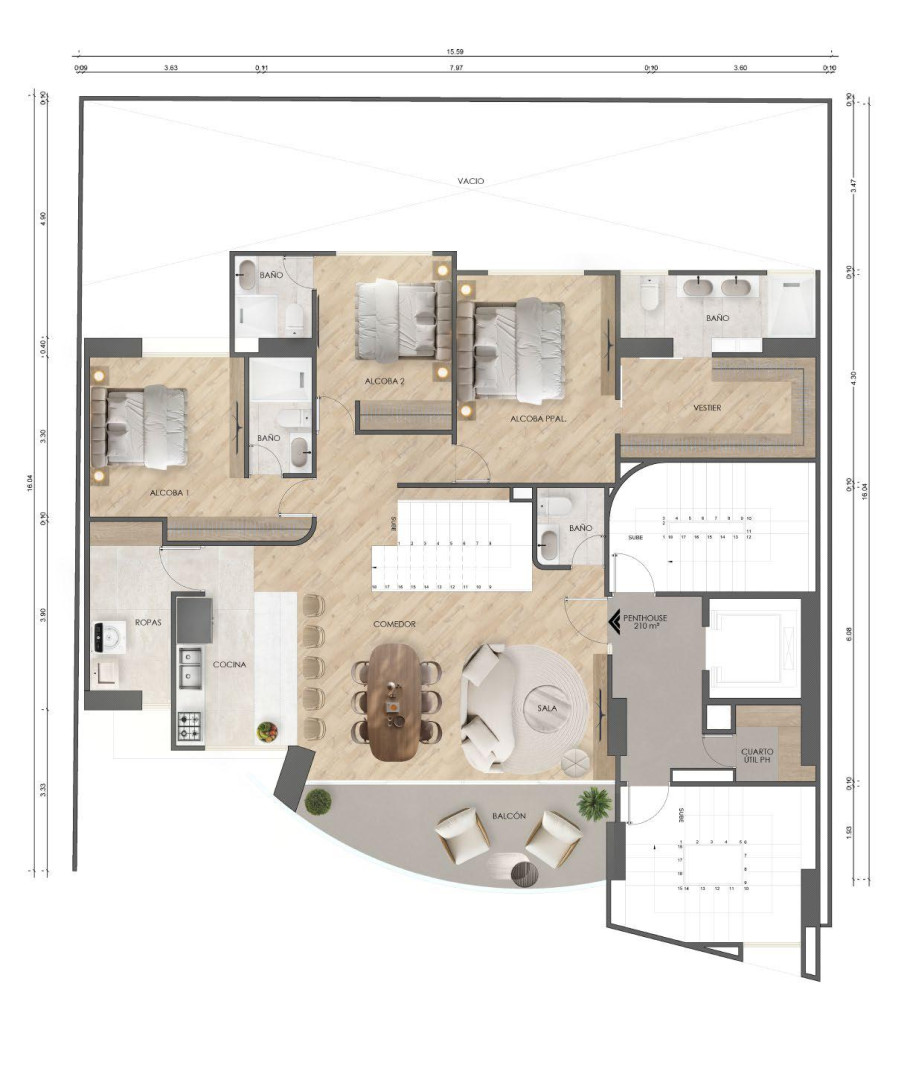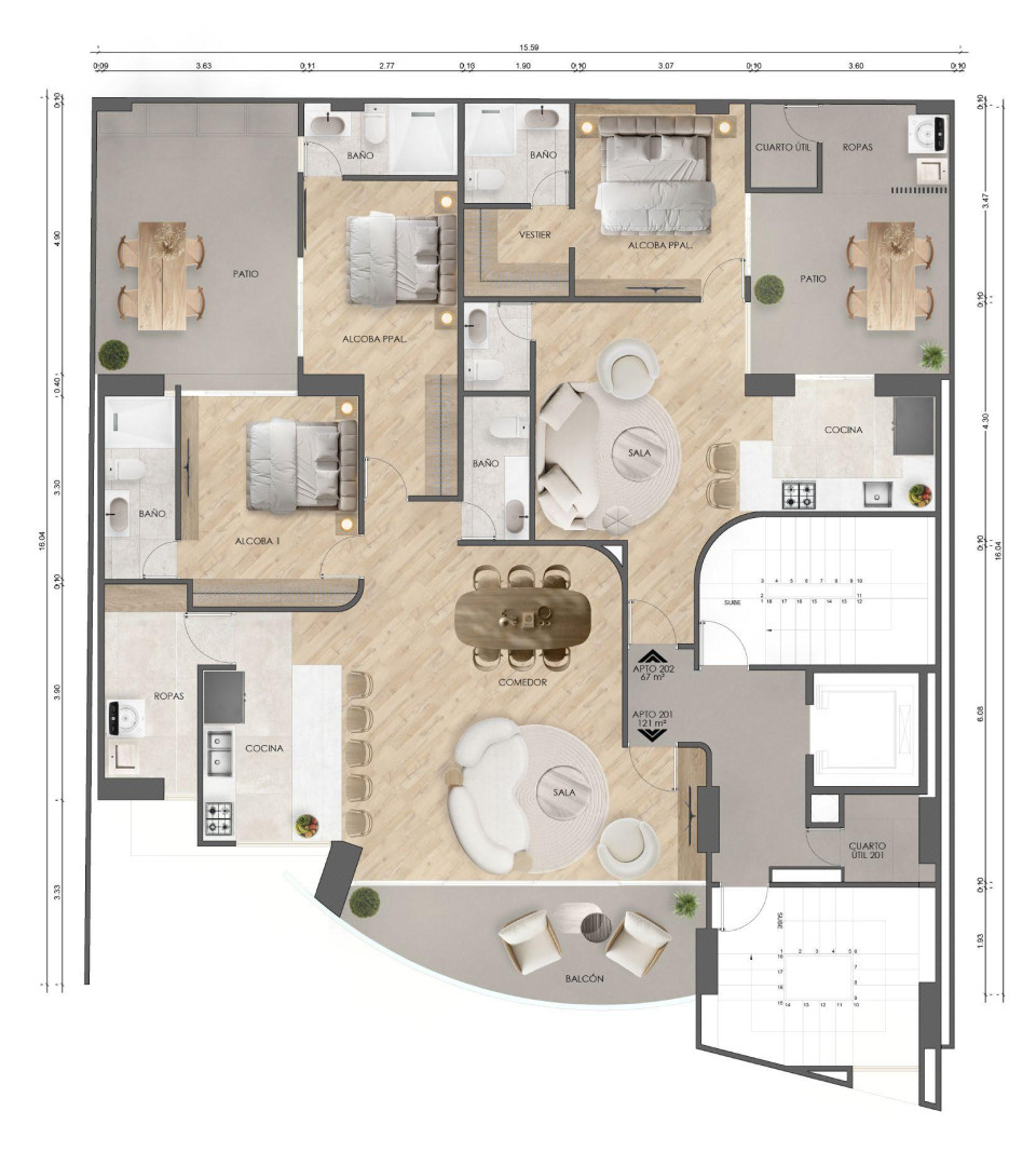 Apartment options range from 67 m² to 210 m², thoughtfully designed to adapt to different lifestyles and investment strategies. Select units offer spacious balconies or expansive private terraces, ideal for entertaining, relaxing, or enjoying Medellín’s pleasant year-round climate.